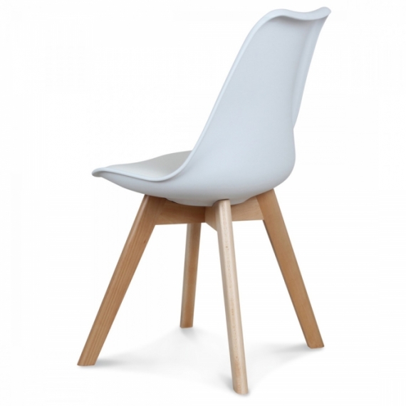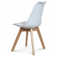 SILLA INFANTIL. ASIENTO DE POLIPROPILENO TAPIZADO EN VINIL. PATAS DE MADERA.